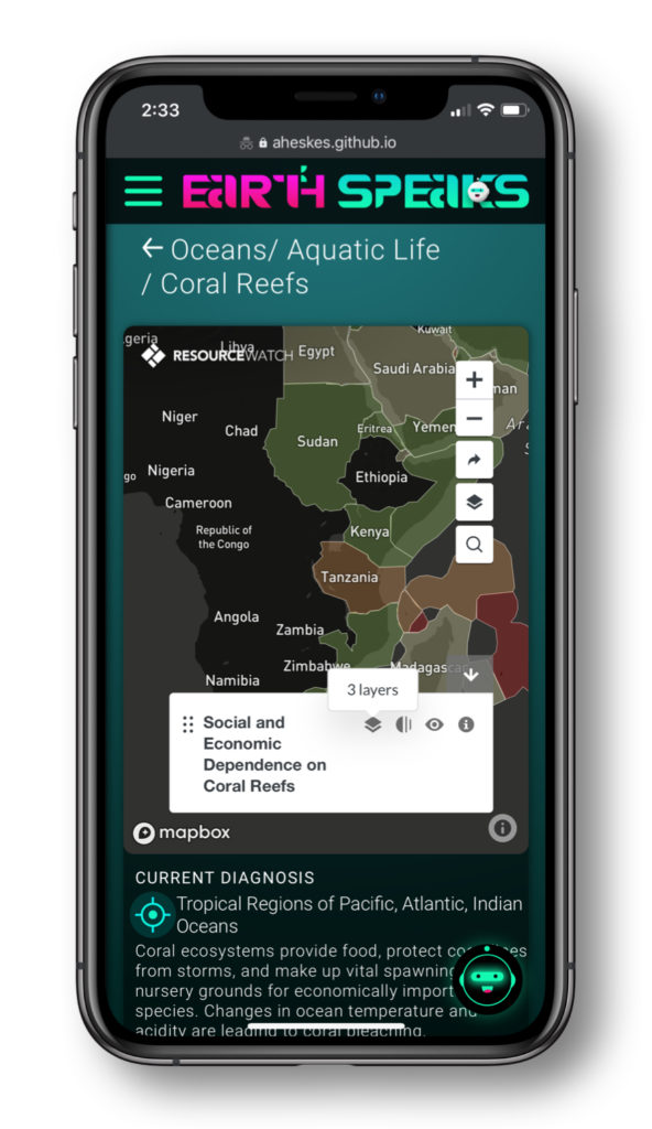 EarthSpeaks offers personalized dashboard customization to track local environmental concerns, such as the health of coral reefs and changes in sea level.