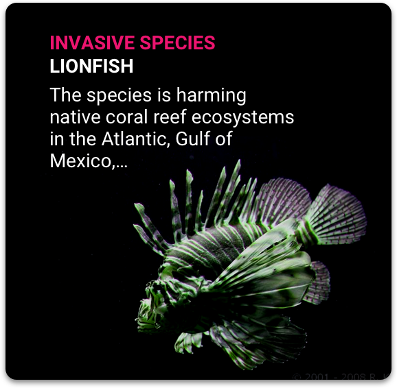 Lionfish, an invasive species, have reduced native fish populations by nearly 70 percent.